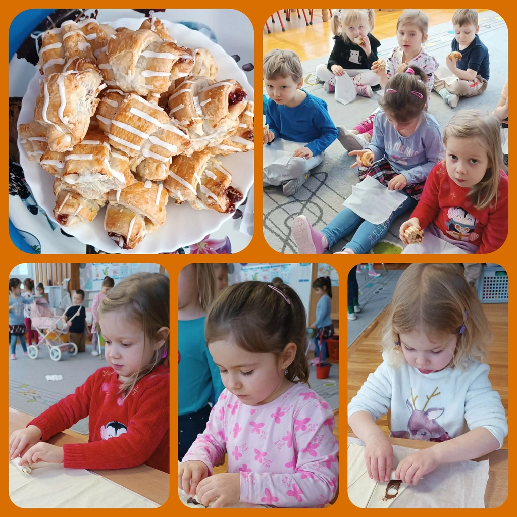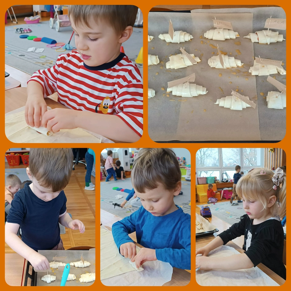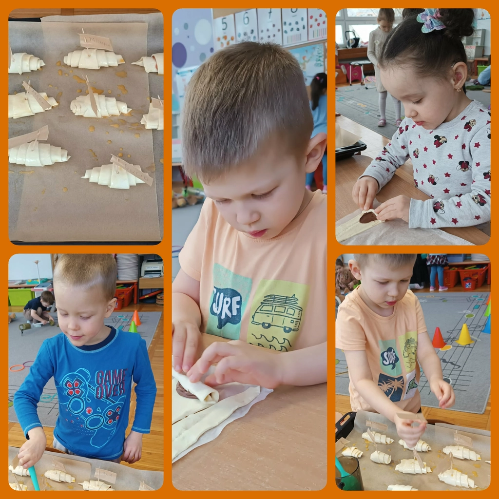 Pszcz贸艂ki obejrza艂y r贸偶ne rodzaje rogali, spr贸bowa艂y mini rogali z cukierni i zrobi艂y ,,burz臋 m贸zg贸w”, czyli szuka艂y rzeczy, kt贸re maj膮 kszta艂t rogala. Potem pozna艂y technik臋 zawijania rogali i ka偶da Pszcz贸艂ka zrobi艂a swojego rogala z ciasta francuskiego馃槉