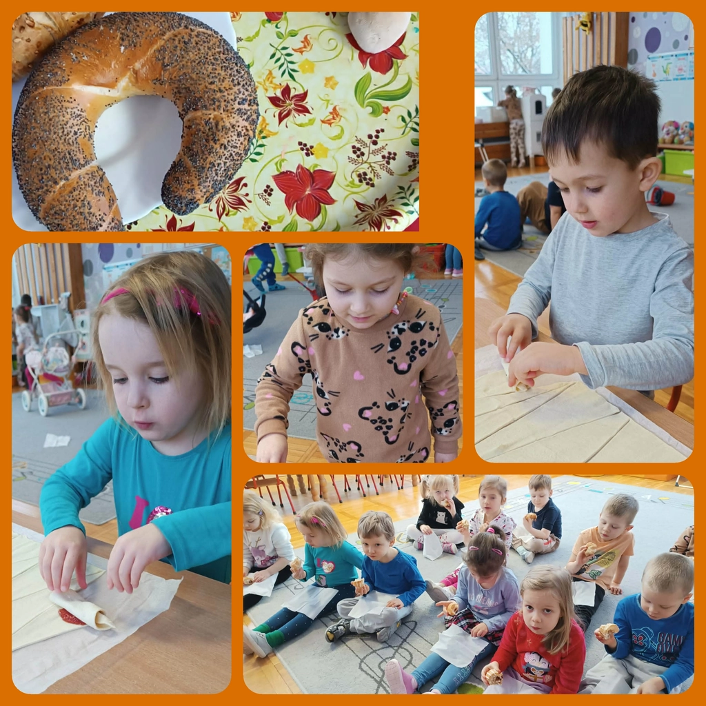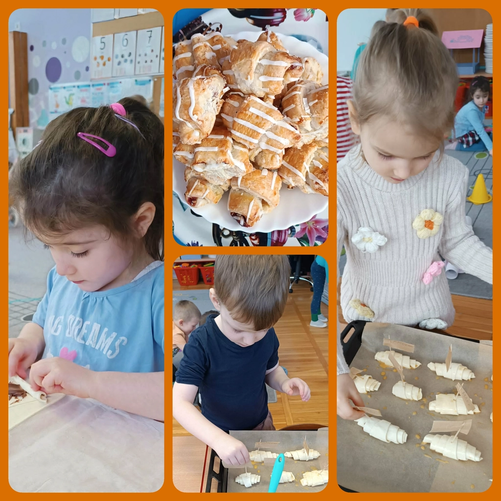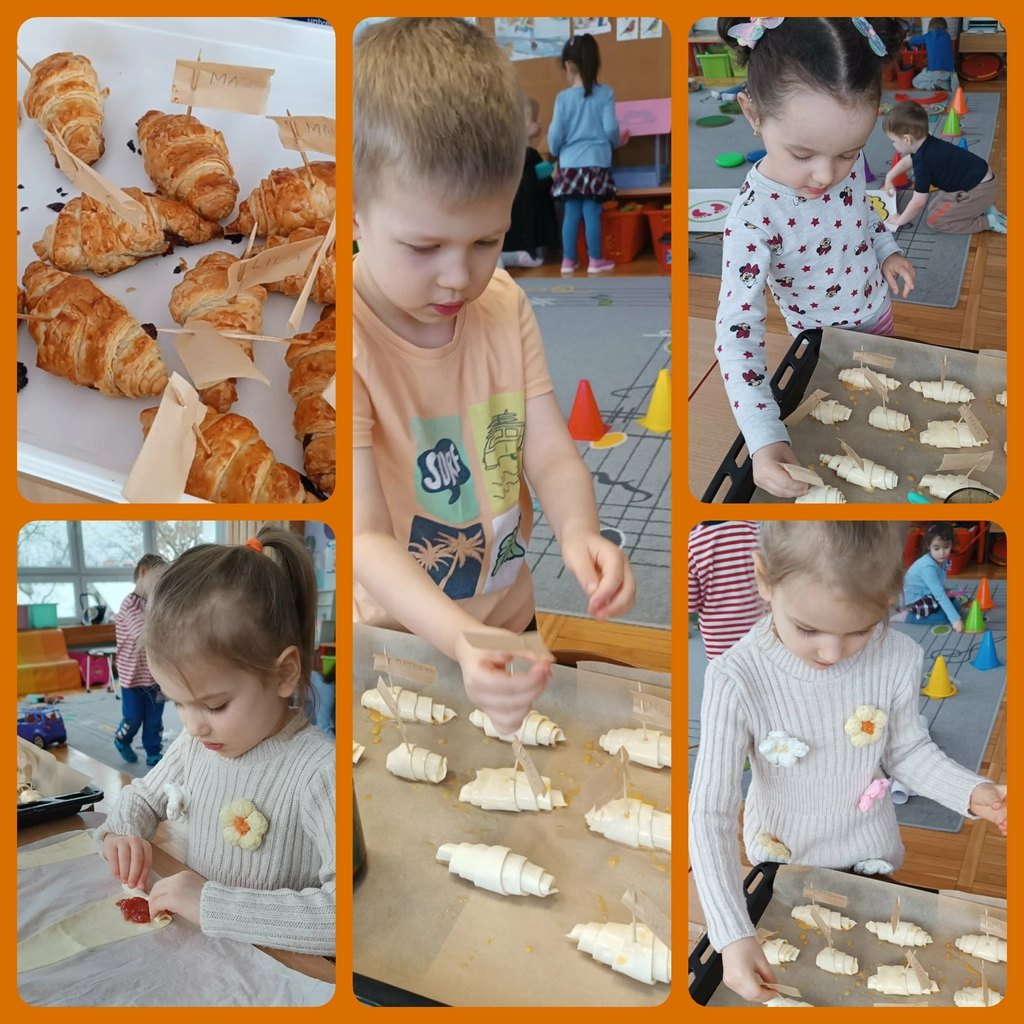 Pszcz贸艂ki obejrza艂y r贸偶ne rodzaje rogali, spr贸bowa艂y mini rogali z cukierni i zrobi艂y ,,burz臋 m贸zg贸w”, czyli szuka艂y rzeczy, kt贸re maj膮 kszta艂t rogala. Potem pozna艂y technik臋 zawijania rogali i ka偶da Pszcz贸艂ka zrobi艂a swojego rogala z ciasta francuskiego馃槉