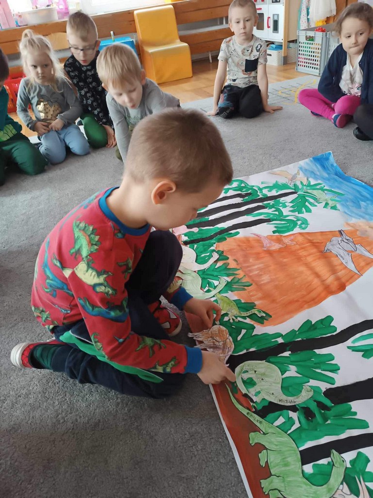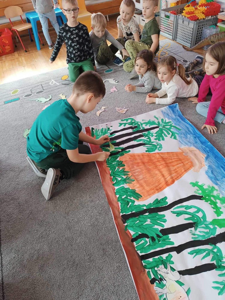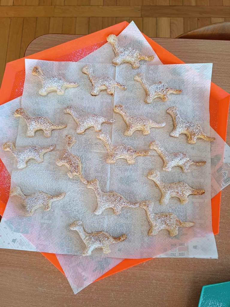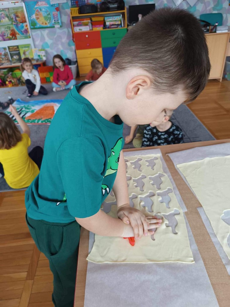 Grupa IV – Dzień Dinozaura Post published:28 lutego, 2024 Post category:Grupa IV / Wydarzenia Grupa IV – Dzień Dinozaura W naszej sali dziś zagościły dinozaury. Najpierw było trochę wiadomości, potem wymalowaliśmy prehistoryczny las , w którym zamieszkały dinozaury a na koniec upiekliśmy dinozaurowe ciasteczka. I jeszcze na zakończenie żelki – dinozaury. Może ci się spodobać również Świąteczne przedstawienie „Mała królewna i śnieg” w wykonaniu Pszczółek. 17 grudnia, 2025 Wystawa prac „Jesienny spacer”. 13 listopada, 2025 Europejski Tydzień Mobilności w Przedszkolu Miejskim nr 4 22 września, 2023