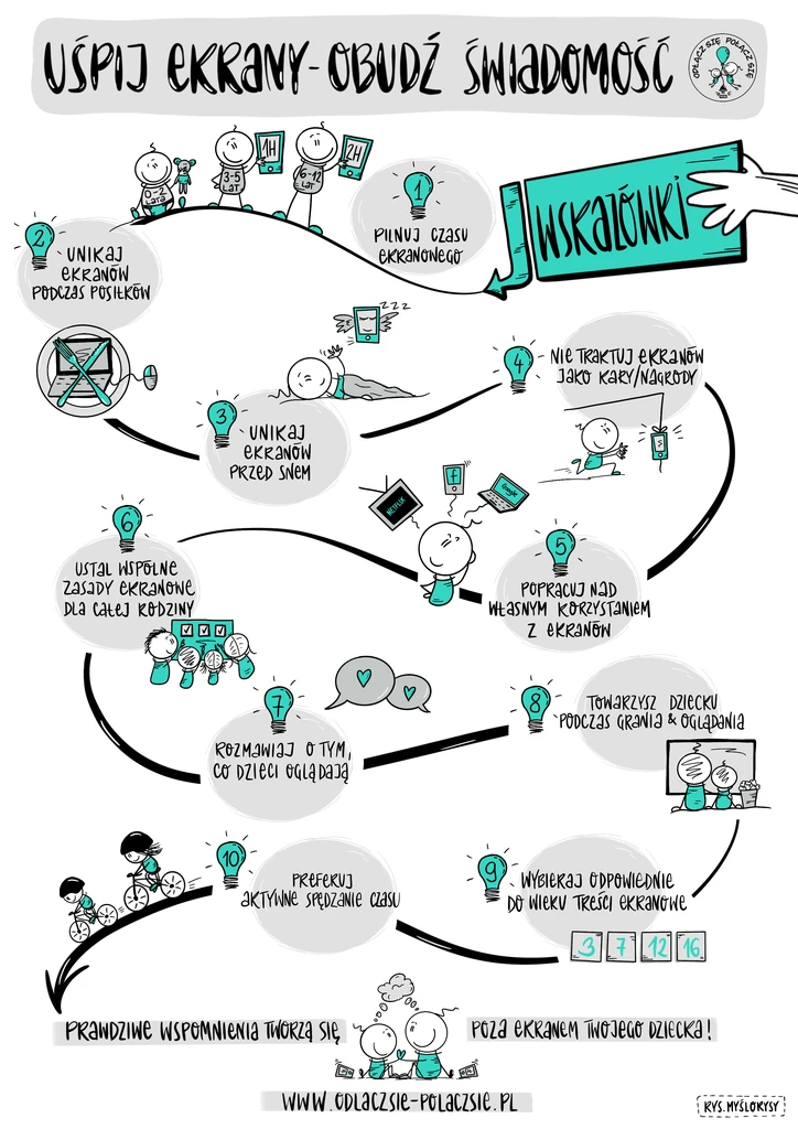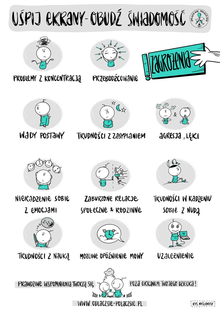 • poznali zagrożenia i niebezpieczeństwa płynące z nadmiarowego korzystania z ekranów przez dzieci
